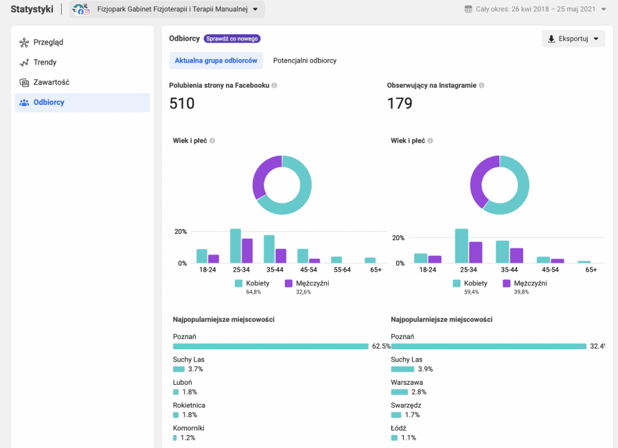 Posiadając stronę firmową, masz dostęp do wielu statystyk dotyczących twoich odbiorców oraz potencjalnych klientów. Dzięki nim możesz tworzyć grupy odbiorców i analizować je pod względem choćby częstotliwości polubień, komentarzy, udostępniania postów, a także analizować ich wiek, pochodzenie i zainteresowania. Pozwoli ci to lepiej dopasowywać posty i reklamy do oczekiwań odbiorców – będziesz miał wgląd w informacje, które posty się sprawdzają, a które nie.